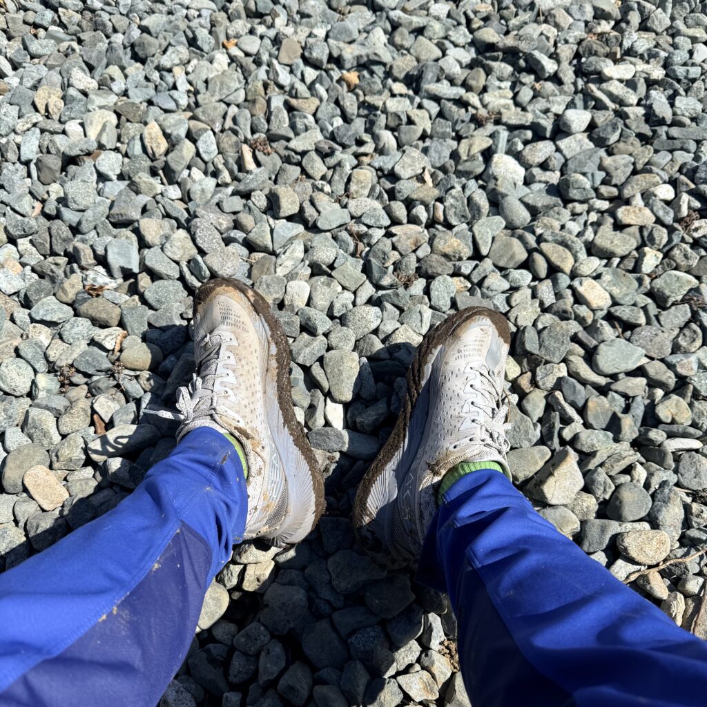 下山の最中に泥は乾き、崩れ落ちていたので、下山した頃には少しはきれいになりました。