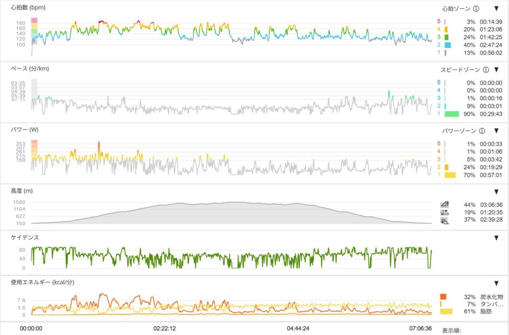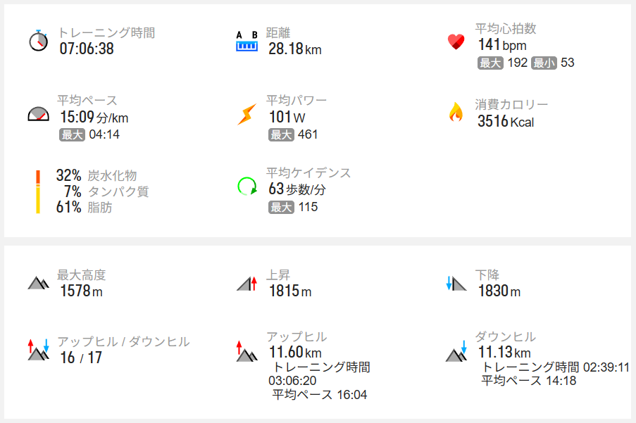 このルートは、往復で約28km、登ったり下ったりを合わせた高さ(累積標高)は約1500mにもなります。